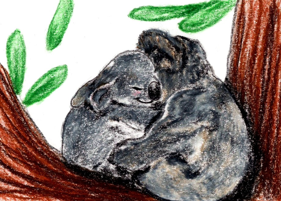 “Kiera, look at all of our leaves!” Kian said happily. He reached into the pile while Kiera munched on a mouthful of delicious greens. When Kian pulled a leaf free, it was almost the size of his head. He held it with both hands to show the smaller koala just how impressive it was.